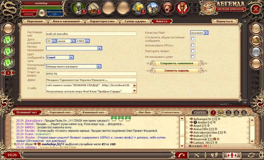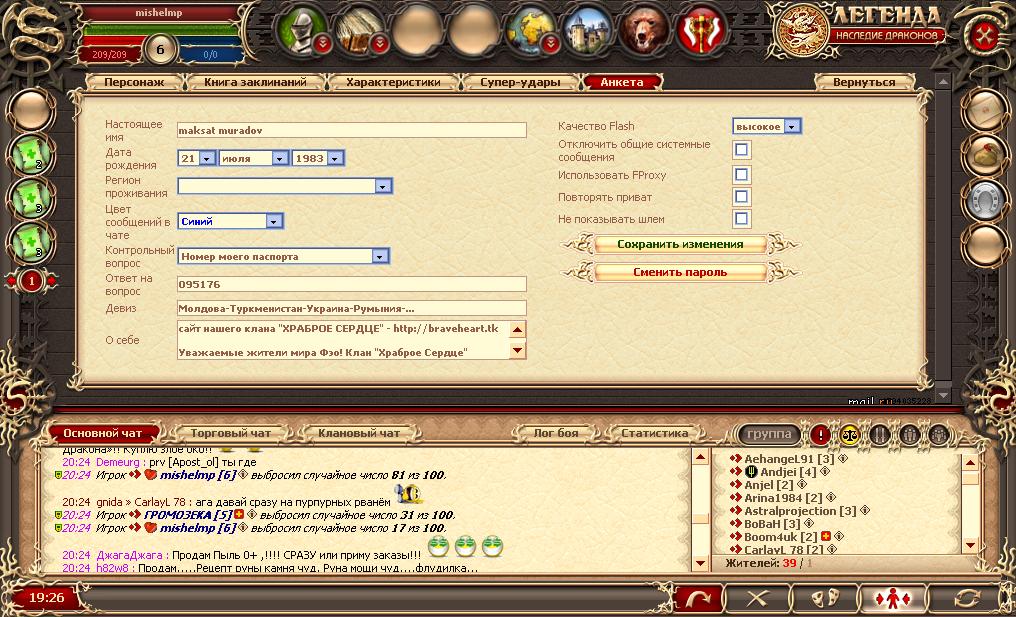 Здравствуйте, магмары и магмарки! Этим вечером ровно в 8 часов по Московскому времени, на Площади Огня прошёл розыгрыш "Лотереи Фэо", организованная кланом "Храброе Сердце". В дебютном этапе лотереи учавствовали всего магмаров. К сожалению, огромное большинство магмаров не решились сыграть в "Лотерею Фэо", так как когда-то были обмануты псевдо-лотереями, бытующими как "лохотроны". Да, так и есть, лотерея - это возможная удачливая случайность, но наша лотерея организованная, здесь всё честно и по правилам. Итак, не отходим от темы: первый розыгрыш состоялся! Участники, которые успели приобрести билеты, и их числа: К сожалению, will1081, ещё одна представительница союзного клана (Орден Блондинок), не успела вовремя приобрести Трудность была в том, что команда "/rand" может быть вызвана только в торговом канале, где барыги То есть выбросились числа: 81, 17, 83 Так получилось, что никто из участников лотереи не угадал числа, но... есть одно "но"! Как и было обещанно, AehangeL91 [3] 20 свитков исцеления и эликсир скорости Воплощение [5] - 20 свитков исцеления и эликсир скорости janamp [4] - 20 свитков исцеления и эликсир скорости и подарочек Иветта [4] - 20 свитков исцеления и эликсир скорости и подарочек Парням премии были вручены из рук в руки, а девушки получат премии по почте. О следующем этапе лотереи вы можете узнать здесь! Желаем всем успехов в игре! З.Ы. не пытайтесь запомнить номер моего паспорта))) это специально для LOL ))))
