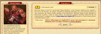 Новый квест! Ура-ура-ура! Кажется он для 3-лвл и выше. Берём его в Станице Дыбрач в Лавке Мясника Боров. Жмём далее и ... Вам удалось одолеть Взбесившегося Зорба! Сообщите эту новость мяснику Борову. Сообщаем и получаем: